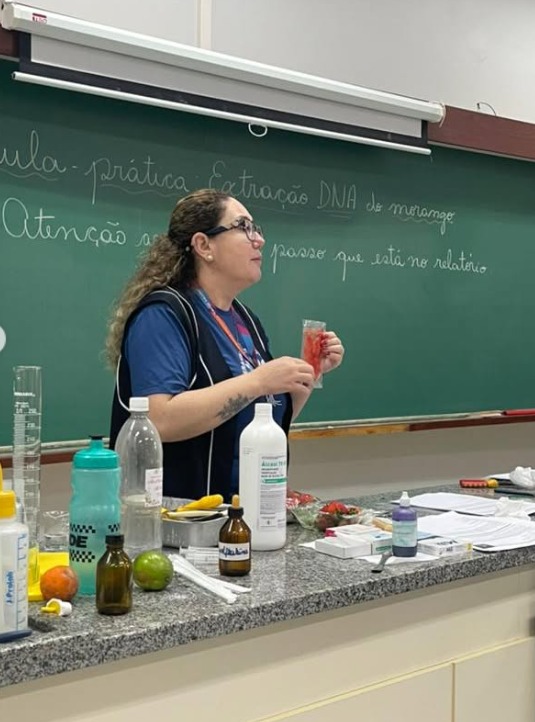 Com morangos, detergente, sal e álcool, eles conseguiram romper as células e observar os fios esbranquiçados do DNA, o material genético presente em todos os seres vivos.
